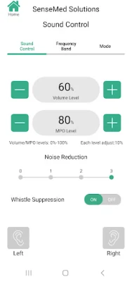 With the Intelligent Control application, you can: 1. Adjust volume of the hearing aids. 2. Switch the hearing aid program. 3. Adjust MPO size 4. Adjust the gain in different frequency band. 5, switch feedback and noise reduction 6. Test your listening 7. Check the battery power and connection status.